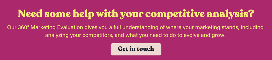 Mandy recommends pairing competitive analysis with market research: “Which industries are booming based on market research, and where is the competitor white space within those markets? Using the two hand-in-hand gives you a roadmap to standing out and owning your space.”