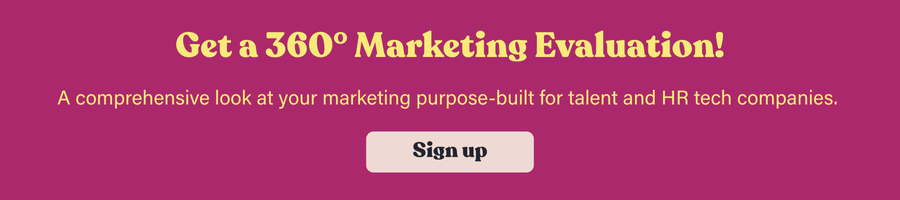 Recognizing these warning signs takes an honest look at your marketing strategy. But turning them into a growth strategy requires specialized expertise in the talent and HR tech markets. That’s exactly what our 360° Marketing Evaluation delivers. During our evaluation, we lead an in-depth assessment to better understand your current marketing, how it’s driving revenue, and, most importantly, how it aligns to your goals. We do a deep dive into: